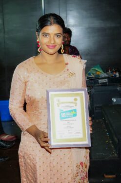 சிறந்த நடிகை என்ற அந்தஸ்த்தை எப்போதோ பெற்றுவிட்ட நடிகை ஐஸ்வர்யா ராஜேஷுக்கு சென்னையில் நடைபெற்ற 18-ஆவது சர்வதேச திரைப்படவிழாவில் க/பெ ரணசிங்கம் படத்தில் மிகச்சிறந்த நடிப்பை வழங்கியதற்காக சிறந்த நடிகைக்கான விருது கிடைத்தது.