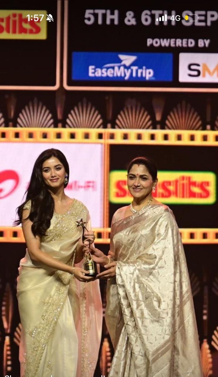 SIIMA சிறந்த அறிமுக நடிகை விருதை வென்று அசத்திய, நடிகை பாக்யஸ்ரீ போஸ் !!