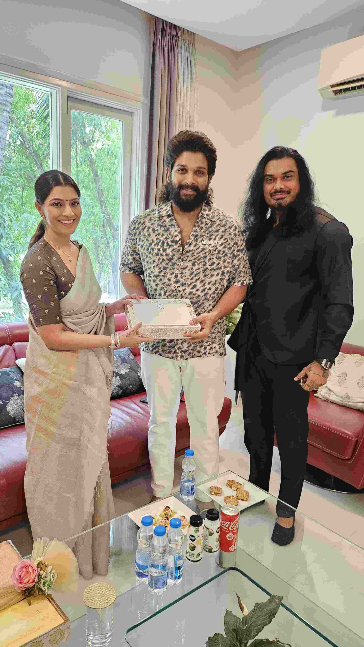 இந்த ஜோடியை மகிழ்ச்சியுடன் வரவேற்ற அல்லு அரவிந்த் மற்றும் அல்லு அர்ஜூன் உரையாடி மகிழ்ந்தனர்.