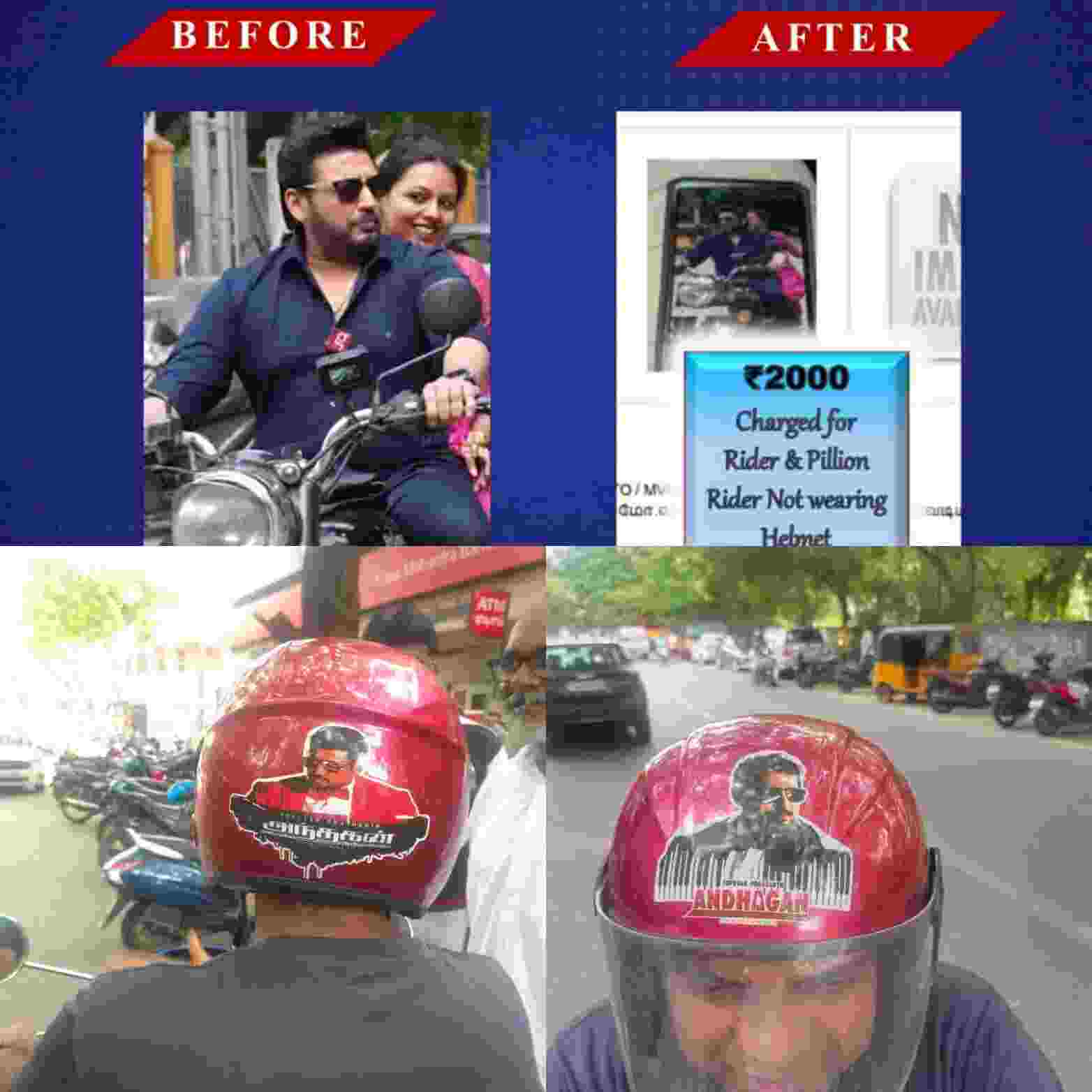 “அந்தகன்” அடையாளத்தோடு பிரசாந்த் கொடுத்த ஹெல்மெட் அணிந்த பைக் சாலையில் சாலையில் வலம் வருகிறது!