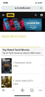 It’s one more feat of accomplishment for “Raatchasan” as it clasps an honourable stature yet again after winning huge appreciations and several accolades. IMDB, one of the most reputed movie database websites on the global map has listed ‘Raatchasan’ at No.1 in the Tamil film industry and No.3 in Indian film industry among the overall Tamil and Indian movies released across the years.