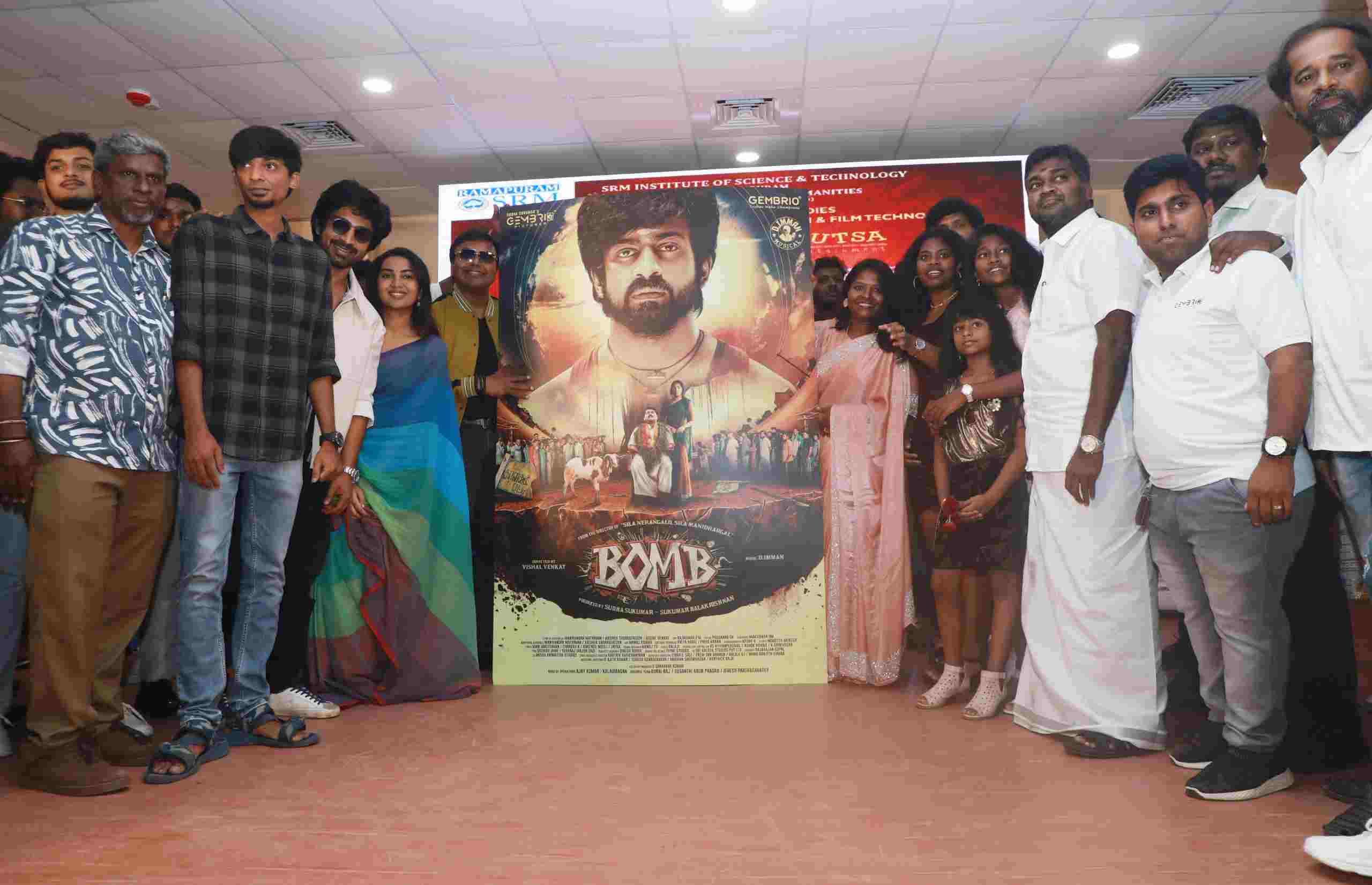 சென்னை 01 செப்டம்பர் 2024 GEMBRIO PICTURES சார்பில் சுதா சுகுமார் மற்றும் சுகுமார் பாலகிருஷ்ணன் தயாரிப்பில், அர்ஜூன் தாஸ், ஷிவாத்மிகா ராஜசேகர், நாசர், காளி வெங்கட், அபிராமி, சிங்கம்புலி, பால சரவணன், TSK ,கிச்சா ரவி, பூவையார், முதன்மை பாத்திரங்களில் நடிக்க, சில நேரங்களில் சில மனிதர்கள் படப்புகழ் விஷால் வெங்கட் இயக்கத்தில், வாழ்வின் வினோதங்களைப் பேசும் கம்ர்ஷியல் எண்டர்டெயினர் டிரமாவாக உருவாகியுள்ள “பாம்” படத்தின் ஃபர்ஸ்ட் லுக் படக்குழுவினர் கலந்துகொள்ள, கல்லூரி மாணவர்கள் முன்னிலையில், கோலாகலமாக வெளியிடப்பட்டது.