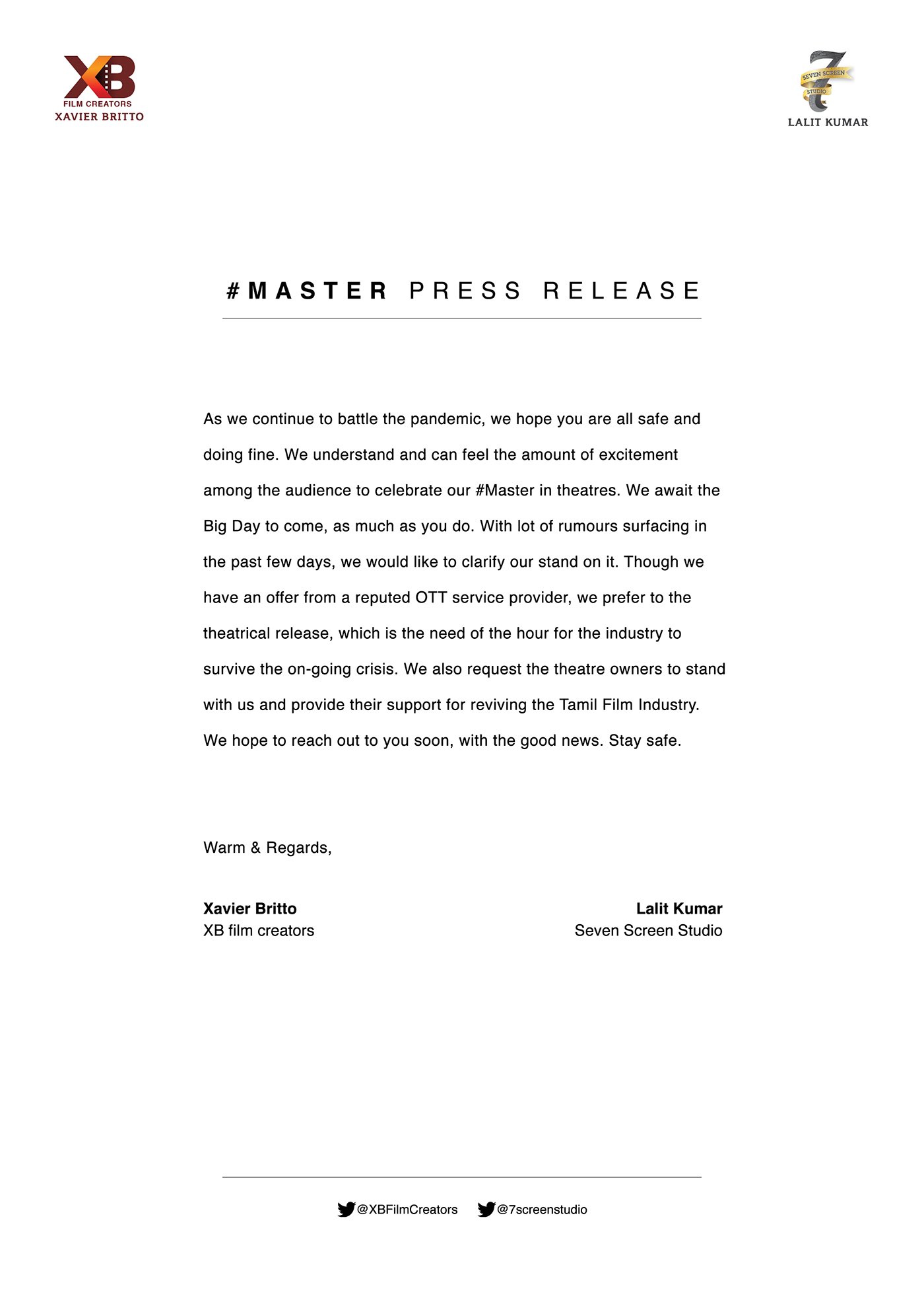 Official statement from producer on Thalapathy Vijay in Master release
