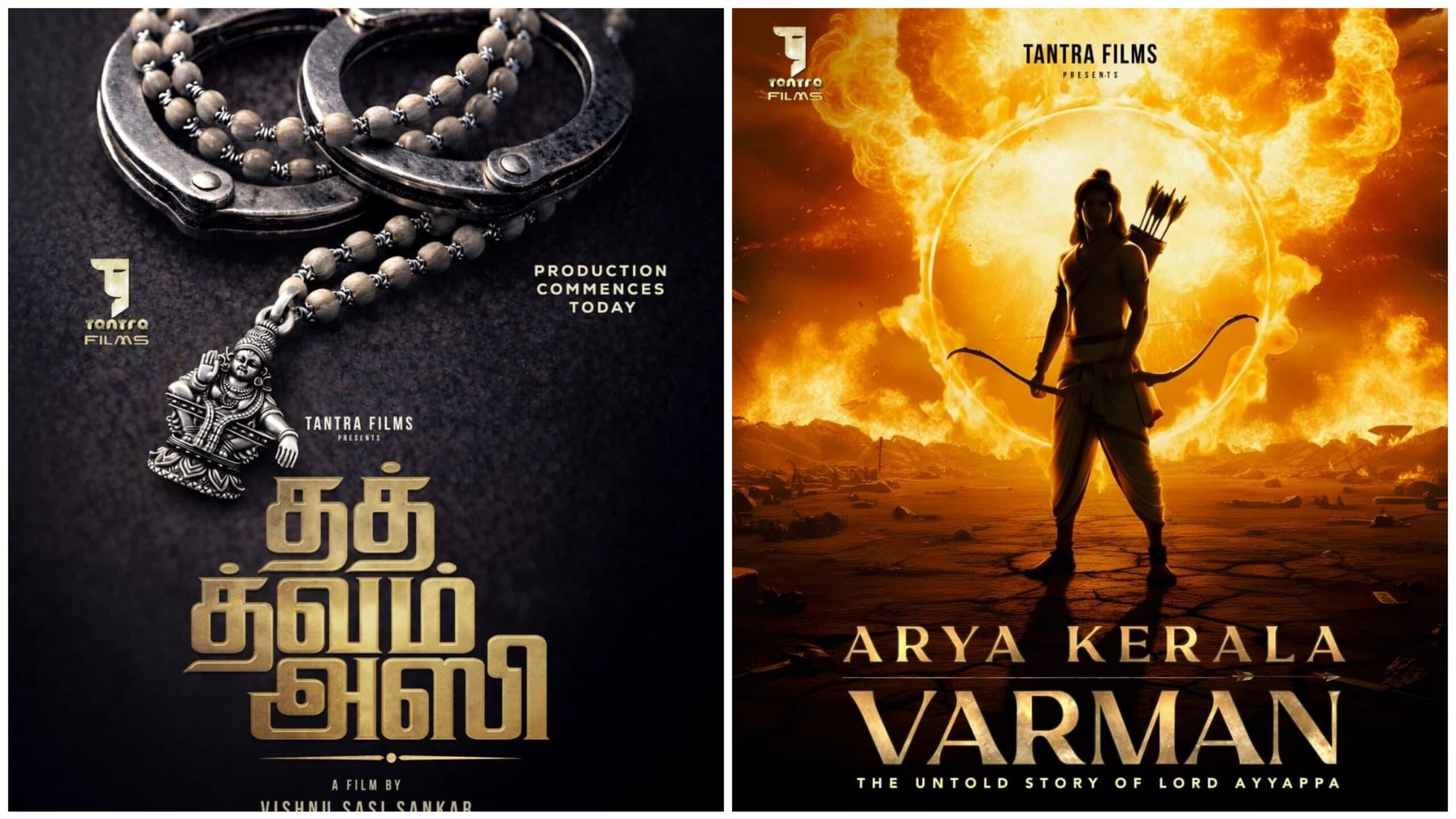 “தத் த்வம் அஸி” மற்றும் “ஆர்ய கேரள வர்மன்” ஆகிய இரண்டு திரைப்படங்களும் பான் இந்திய அளவில் பிரம்மாண்டமாக பல மொழிகளில் வெளியிட திட்டமிடப்பட்டுள்ளது. சுவாமி ஐயப்பனை மையமாகக் கொண்டு உருவாகும் இந்த இரண்டு படங்களும், ஆன்மீகமும் வரலாற்றுப் பெருமையும் கொண்ட முக்கியமான படைப்புகளாக அமையும் என்ற பெரும் எதிர்பார்ப்பை ஏற்படுத்தியுள்ளது.