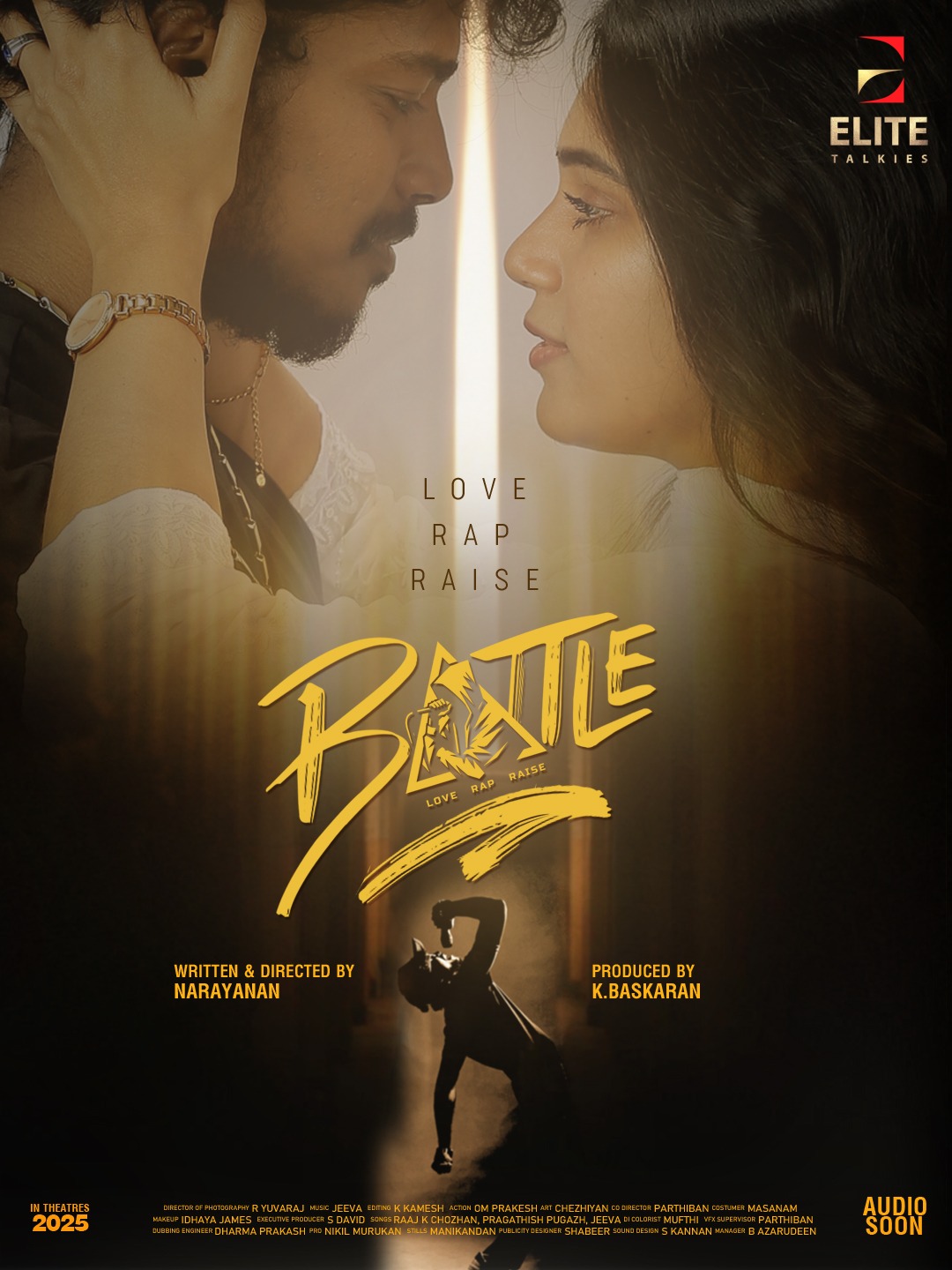 சென்னை 09 அக்டோபர் 2025 எலைட் டாக்கீஸ் பேனரில் கே. பாஸ்கரன் தயாரிப்பில் நாராயணன் இயக்குநராக அறிமுகமாகும் திரைப்படம் ‘பேட்டில்’ (‘Battle’). சமீபத்தில் வெளியான ‘தண்டகாரண்யம்’ படத்தின் உதவி எழுத்தாளராகவும் இயக்குநர் சக்திவேலிடம் இணை இயக்குநராகவும் பணியாற்றியவர் நாராயணன் என்பது குறிப்பிடத்தக்கது.