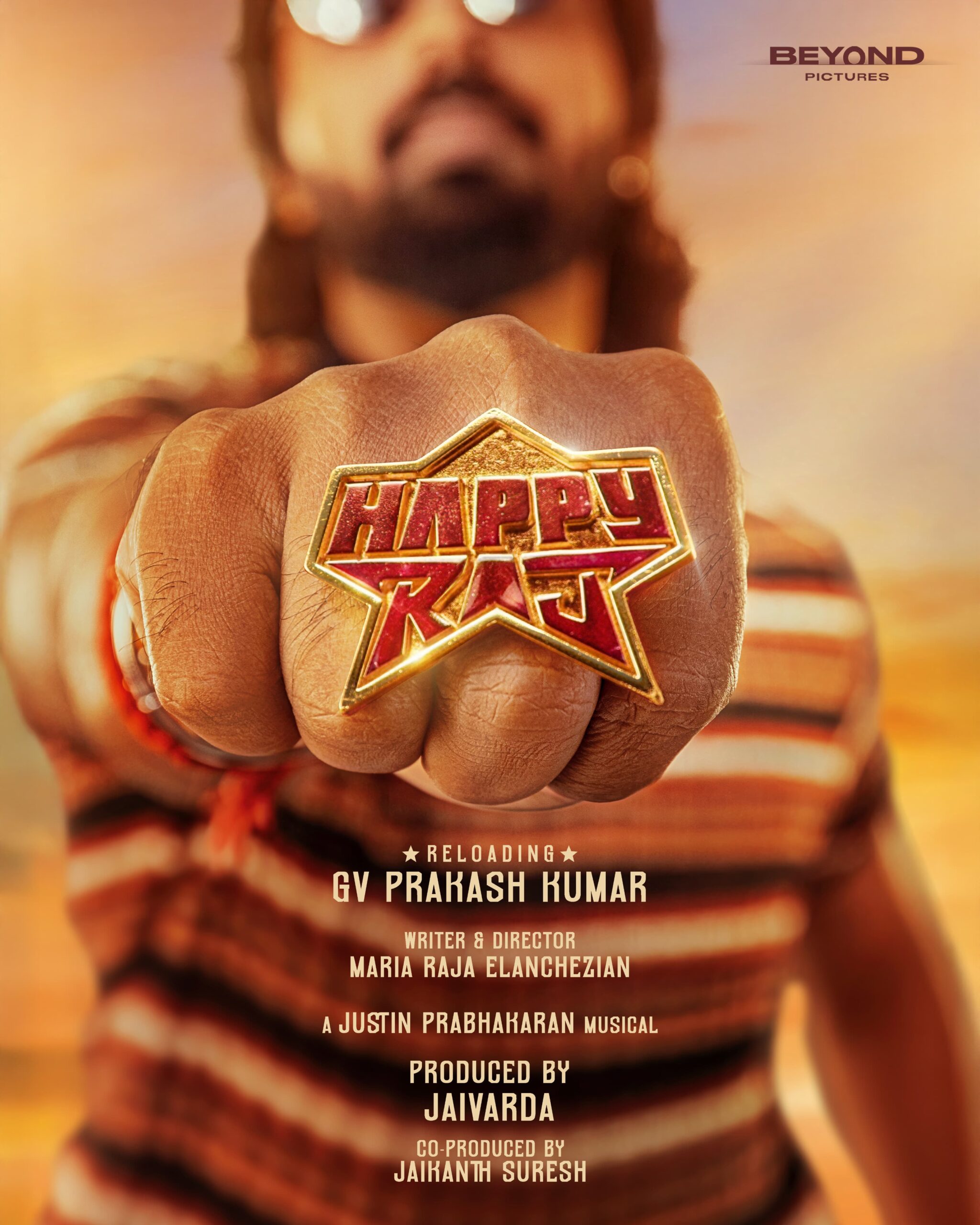 Chennai 08 December 2025 Producer Jaivarda of Beyond Pictures has embarked on his journey in the Tamil film industry with the motive of spearheading with entertainers meant for universal audiences. With a wide array of projects in the pipeline, which will have their official announcements soon, the production house had recently launched its “Production No.1” starring GV Prakash Kumar in the lead role, directed by Maria Elanchezian. Now they have officially announced the film’s title as ‘Happy Raj’.