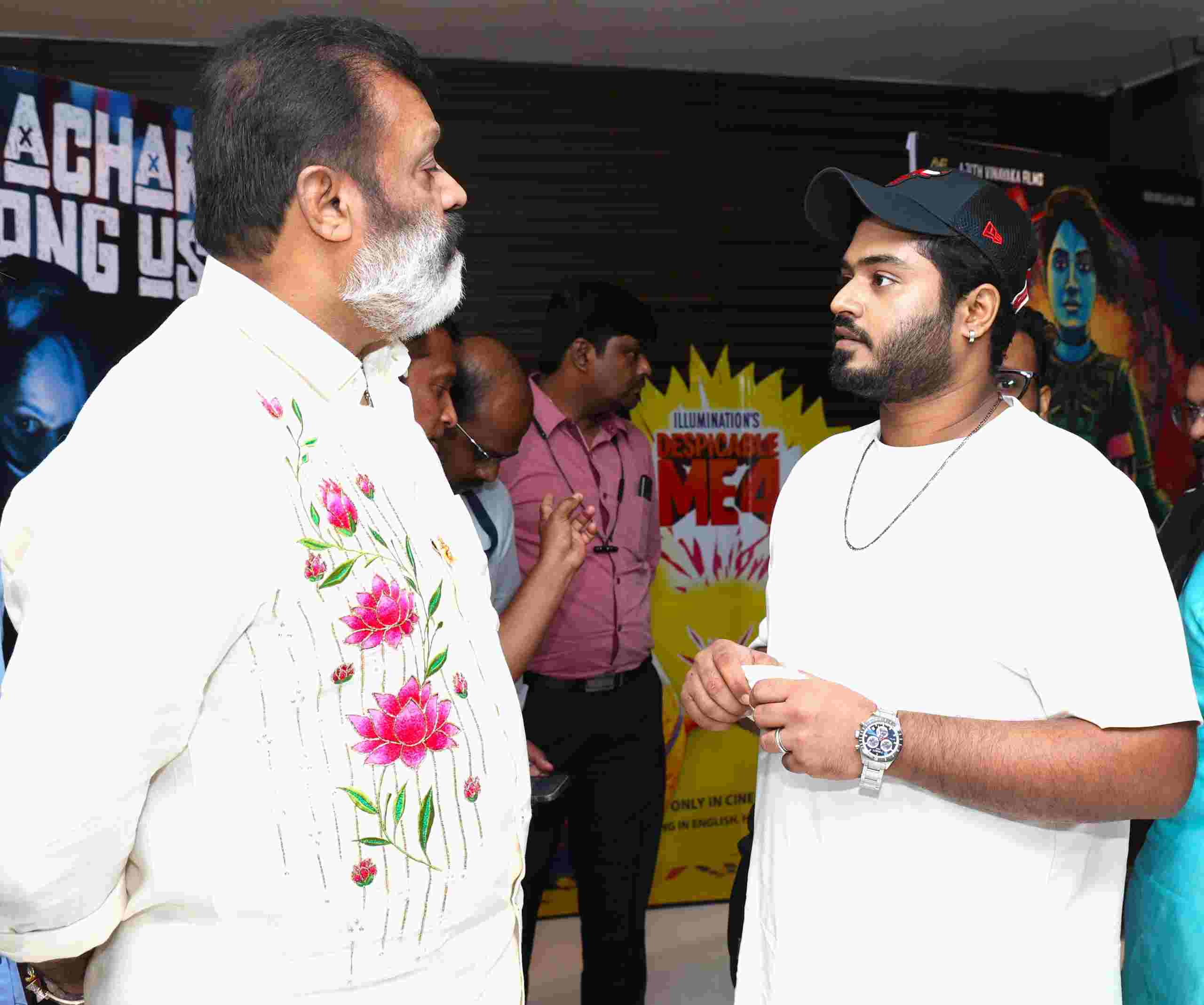 “ககனச்சாரி” சென்னை பத்திரிக்கை ஊடக நண்பர்களுக்காகத் திரையிடப்பட்ட நிலையில், திடீர் சர்ப்ரைஸ் விசிட் அடித்துள்ளார் நடிகர் சுரேஷ் கோபி.