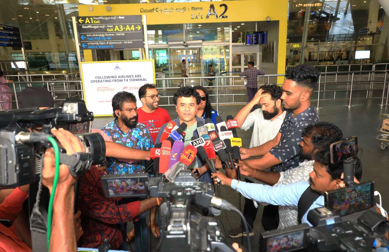 Chennai 25 February 2024 Ganesh Rajagopalan, the Grammy award-winning violinist of celebrated band Shakti, returned to Chennai from Los Angeles today (February 25). He was accorded a warm welcome at the airport by friends, well-wishers and fans.