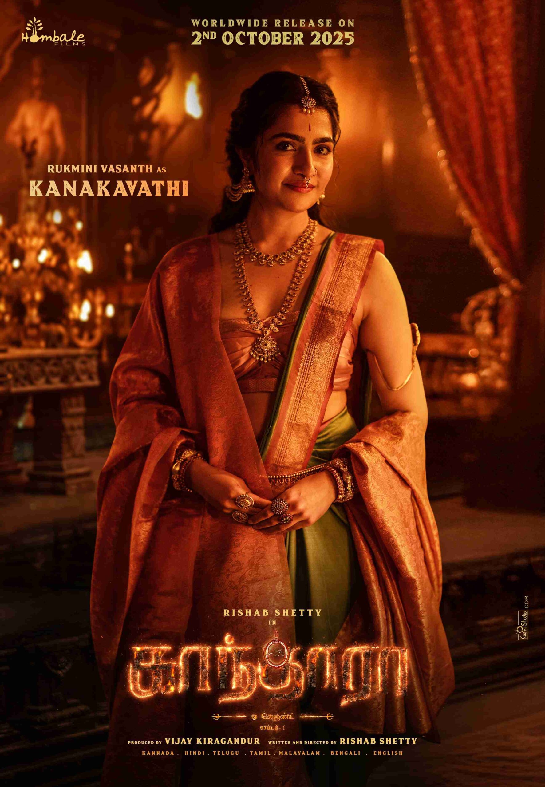 இந்திய கலாச்சாரத்தில் புனிதமும் பண்பாட்டு முக்கியத்துவமும் கொண்ட வரமஹாலக்ஷ்மி திருநாளில், வரவிருக்கும் மாபெரும் திரைப்படமான “காந்தாரா அத்தியாயம் 1” இன் நாயகியாக நடிக்கும் நடிகை ருக்மிணி வசந்தின் ‘கனகவதி’ (Kanakavathi) கதாப்பாத்திர ஃபர்ஸ்ட் லுக் போஸ்டரை, ஹோம்பாலே பிலிம்ஸ் பெருமையுடன் வெளியிட்டுள்ளது.
