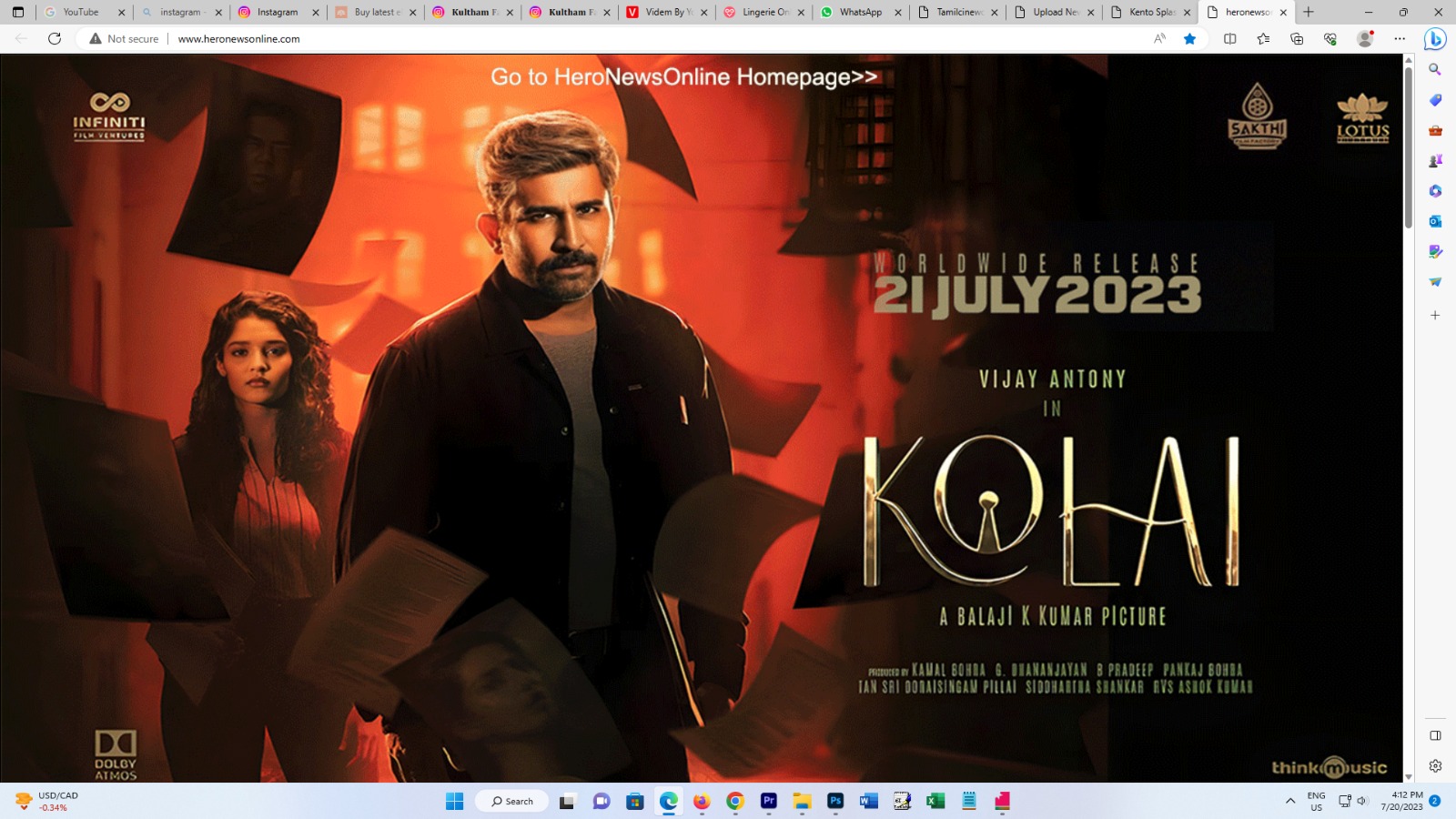 சென்னை 20 ஜூலை 2023 தமிழ் சினிமாவில் சினிமா பின்புலம் இல்லாத நடிகர்கள் நட்சத்திர அந்தஸ்தை எட்டுவது இனிமேல் எட்டாக்கனிதான் என்ற சூழல் நிலவி வந்த காலத்தில் 2012 ஆம் ஆண்டு நான் என்கிற படத்தின் மூலம் நாயகனாக அறிமுகமானவர் நடிகர் விஜய் ஆண்டனி சென்டிமென்ட், சகுனங்கள் என புரையோடிப்போன தமிழ் சினிமாவில் பெயர் வைப்பதில் பெரும் மாற்றங்களை ஏற்படுத்தி தயாரிப்பாளராக, நடிகராக, இசையமைப்பாளராக, இயக்குநராக வெற்றி கண்டவர் விஜய் ஆண்டனி. வணிக லாபத்துக்காக படம் தயாரிக்கும் திரைப்பட துறையில் பிச்சைக்காரன், நம்பியார், சைத்தான், திமிரு புடிச்சவன், எமன், கொலைகாரன், இந்தியா பாகிஸ்தான் என எதிர்மறையான பெயர்களை படத்திற்கு சூட்டி மே 19 அன்று வெளியான பிச்சைகாரன் – 2 தமிழ், தெலுங்கு என இரண்டு மொழிகளில் குறுகிய நாட்களில் பாக்ஸ் ஆபீஸ் வசூலில் சாதனை நிகழ்த்தியதன் மூலம்தென்னிந்திய சினிமாவில் 100 கோடி ரூபாய் வியாபார நடிகராக வளர்ந்திருக்கும் நட்சத்திர நடிகர் விஜய்ஆண்டனி நடிப்பில் நாளை வெளிவர இருக்கும் படம் கொலை க்ரைம் த்ரில்லர் கதைக்களத்தில் உருவாகியுள்ள இப்படத்தில் விஜய் ஆண்டனி, டிடெக்டிவ் கதாபாத்திரத்தில் நடித்துள்ளார்.