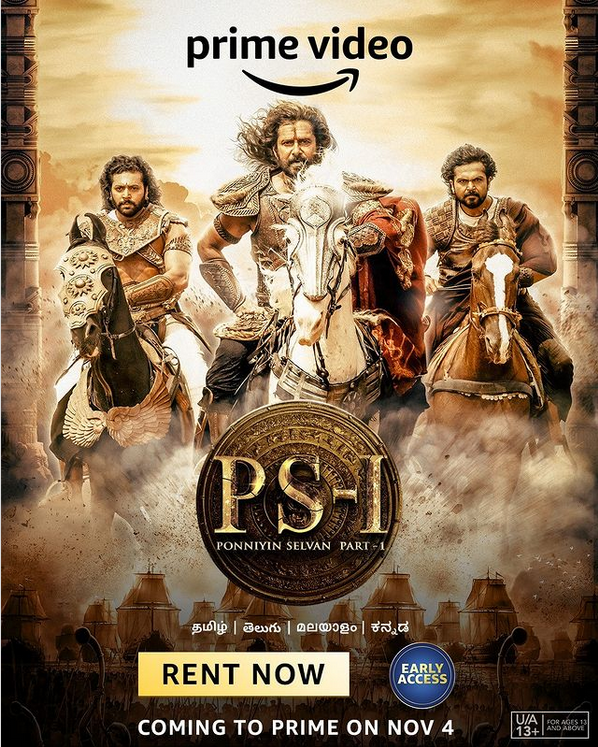 Chennai 29 October 2022 Mani Ratnam’s royal epic, Ponniyin Selvan 1, Now Available for ‘Early Access’ Movie Rentals on Prime Video at INR 129 across 4 Languages !!