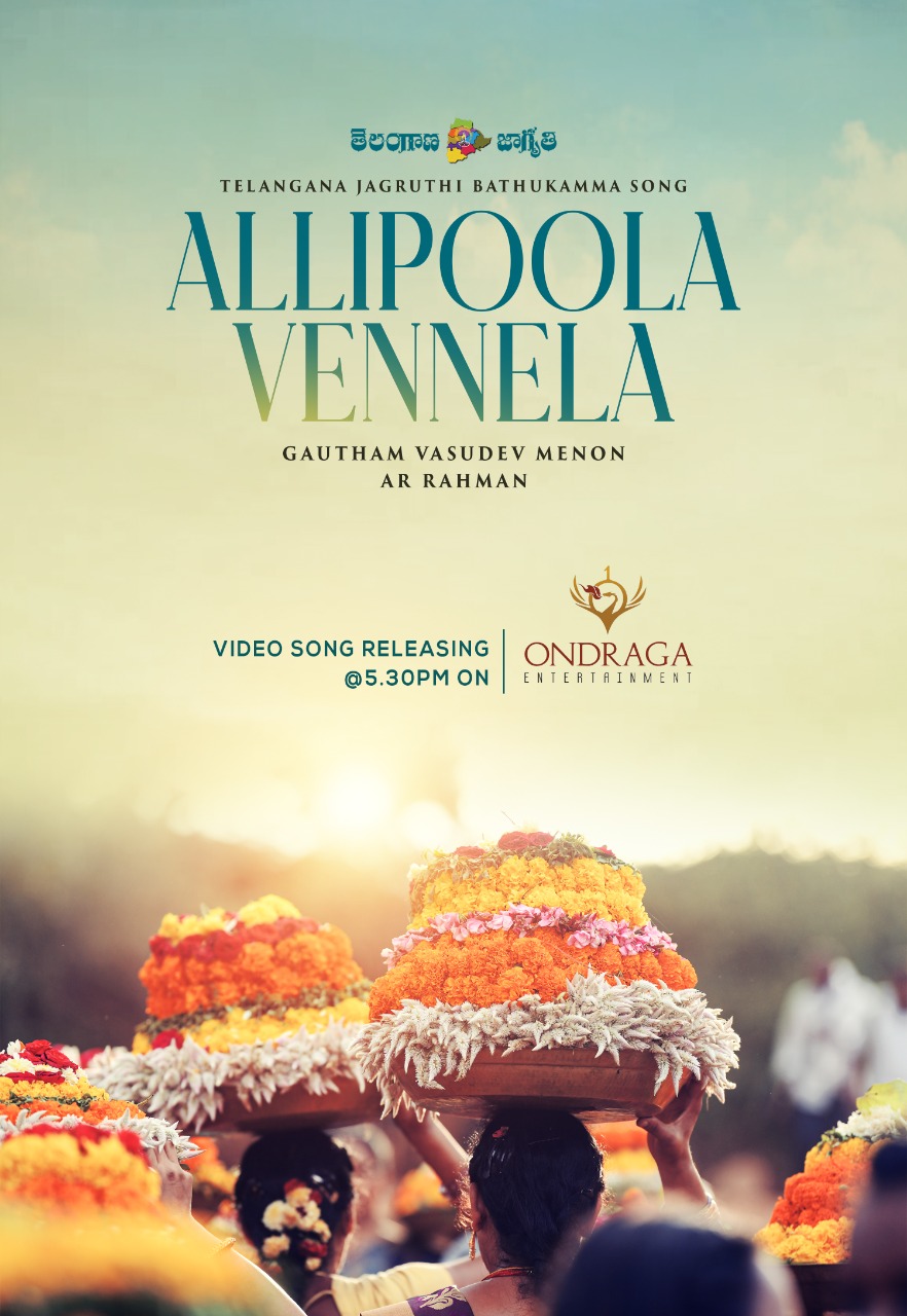 வண்ணங்கள், மெல்லிசை மற்றும் ஒற்றுமையின் பண்டிகை,  பதுக்கம்மா  சிறப்பு பாடலின் ஒரு காட்சியை இங்கே பகிர்கிறேன். இதனை உருவாக்கியவர்கள் @arrahman @menongautham என் சகோதரிகள் இணைந்த கனவு குழு . #AllipoolaVennela #BathukammaSong  @TJagruthi @BrindhaGopal1 என்று குறிப்பிட்டுள்ளார்.