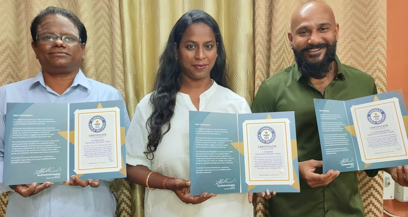 சமீபத்தில் பாண்டிச்சேரி முதல்வர் ரங்கசாமி பங்குகொள்ள இக்குழுவை பாராட்டி கின்னஸ் சாதனைக்கான சான்றிதழை வழங்கினார்.