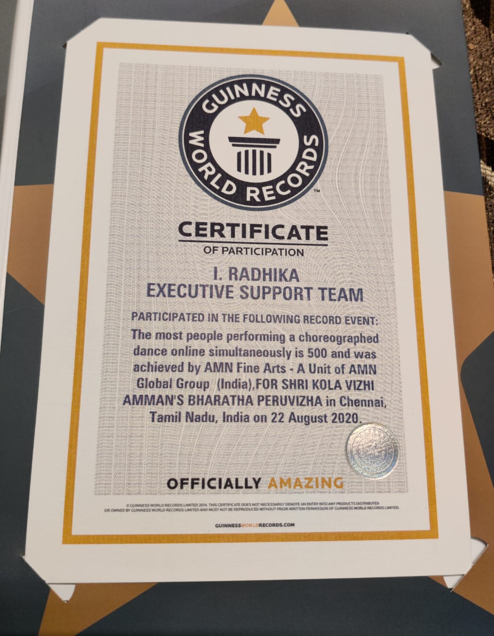 நாட்டிய கலை மீதான விழிப்புணர்வை ஏற்படுத்துவதற்காக, டான்ஸ் மாஸ்டர் I.ராதிகா மேற்பார்வையில், நடன நிகழ்ச்சி கின்னஸ் சாதனை புரிந்துள்ளது.