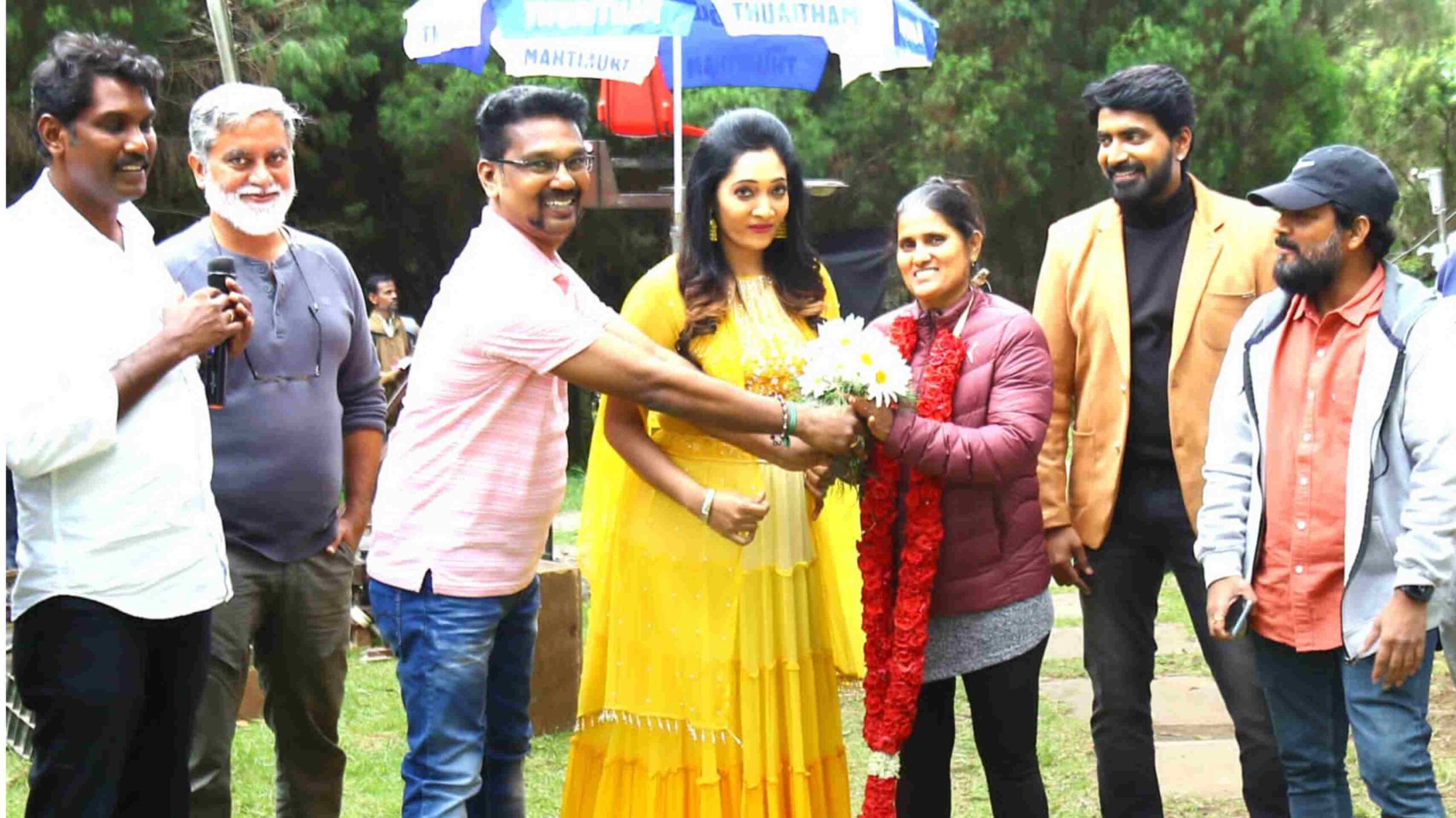 இன்று கொடைக்கானலில் நடந்துவரும் படப்பிடிப்பில் பணியாற்ற வந்த நடிகை வசந்திக்கு படக்குழு சார்பில் கதாநாயகி சினாமிகா ரோஜா மாலை அணிவித்து வாழ்த்து தெரிவித்தார்.