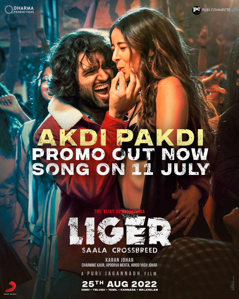 The makers of the crazy project Liger (Saala Crossbreed) starring Pan India star The Vijay Deverakonda and directed by Path Breaker Ace Director Puri Jagannadh announced to kick-start the musical promotions. While promo of first single Akdi Pakdi will be out on July 8th, the song will be out on 11th.