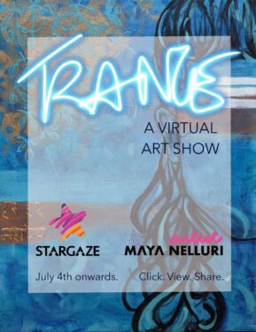 Maya is also a well-known Artist. She has had many art exhibitions, both solo and group, over the years. Currently her virtual exhibition Trance is live on