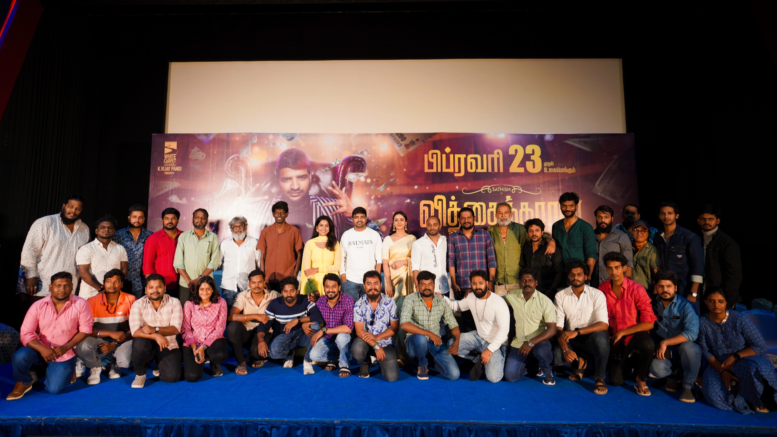சென்னை 13 பிப்ரவரி 2024 ஒயிட் கார்பெட் பிலிம்ஸ் சார்பில், K விஜய் பாண்டி தயாரிப்பில், அறிமுக இயக்குநர் வெங்கி இயக்கத்தில், சதீஷ் கதாநாயகனாக நடிக்கும், வித்தியாசமான ஹெய்ஸ்ட் திரைப்படம் “வித்தைக்காரன்”. ப்ளாக் காமெடியில் உருவாகியுள்ள இப்படம் பிப்ரவரி 23 ஆம் தேதி திரைக்கு வரவுள்ள நிலையில், திரைப்படக்குழுவினர் கலந்து கொள்ள பத்திரிக்கை ஊடக நண்பர்கள் முன்னிலையில் நடைபெற்றது.