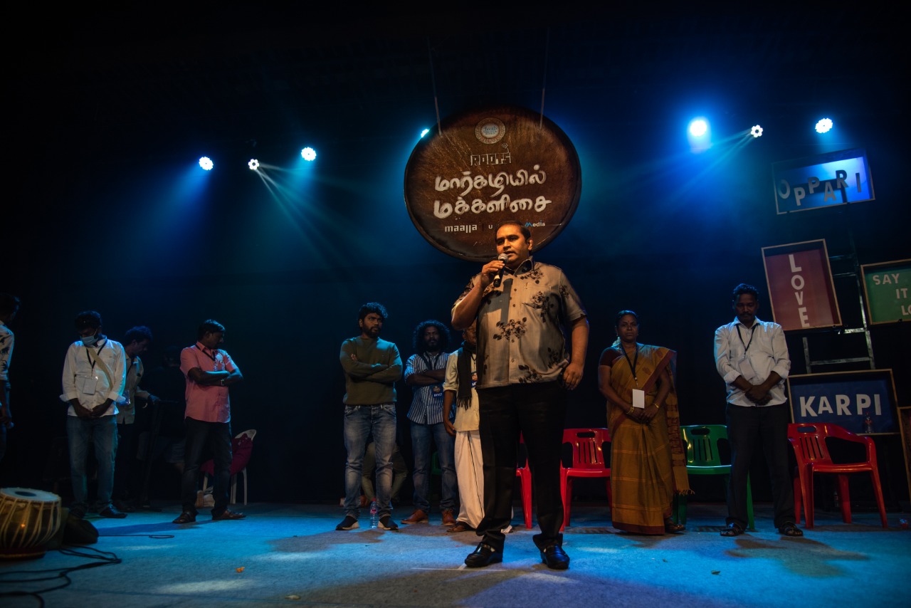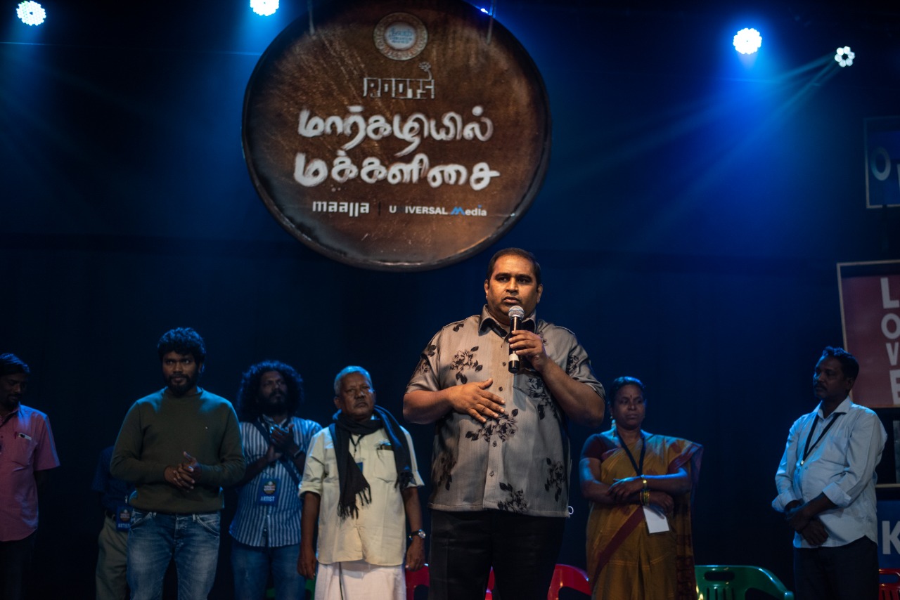 நாட்டுப்புற இசைக்கலைஞர்களை ஒருங்கிணைத்து மார்கழியில் மக்களிசை எனும் நிகழ்ச்சியின் மூலம் அந்த கலைஞர்களுக்கு இந்த மேடையை ஏற்படுத்திக் கொடுத்த நீலம் பண்பாட்டு மையம் மற்றும் இயக்குனர் பா.இரஞ்சித்திக்கு வாழ்த்துகளை தெரிவித்துக்கொள்கிறேன்.