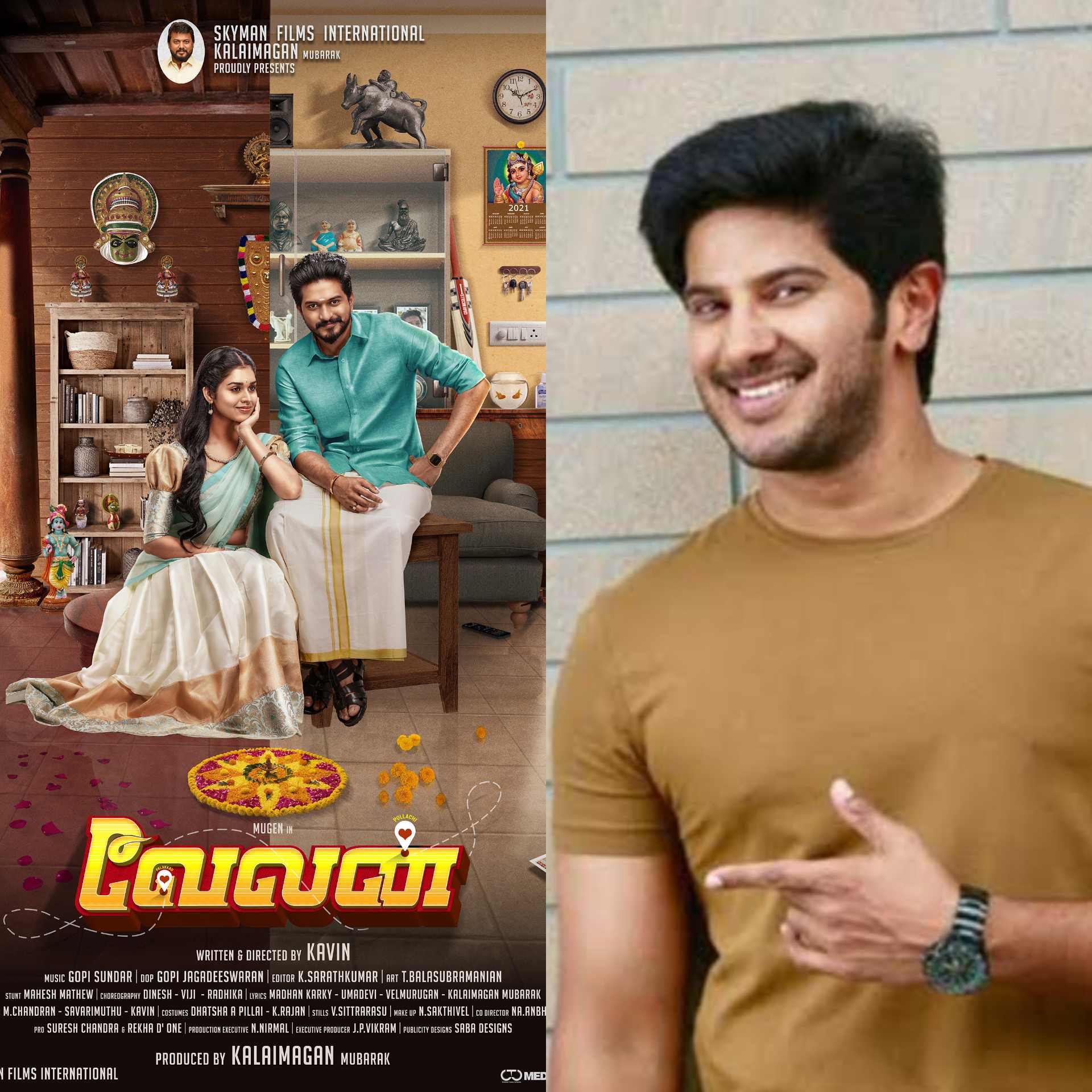 SkyMan Films International சார்பில் தயாரிப்பாளர் கலைமகன் முபாரக் தயாரிப்பில் முதல் படமாக, பிக்பாஸ் முகேன் மற்றும் மீனாக்ஷி நடிக்கும் “வேலன்” படம் துவக்கம் முதலே எதிர்பார்ப்பிற்குரிய படமாக உருவாகி வந்துள்ளது. படபிடிப்பு முடிந்து, படத்தின் போஸ்ட் புரடக்சன் இறுதி கட்டத்தில் உள்ள நிலையில், படத்திற்கு கிடைத்த மற்றொரு மகுடமாக, இந்திய அளவில் பிரபலாமான நட்சத்திர நடிகர் துல்கர் சல்மான் “வேலன்” படத்தின் ஃபர்ஸ்ட் லுக்கை வெளியிட்டுள்ளார்.