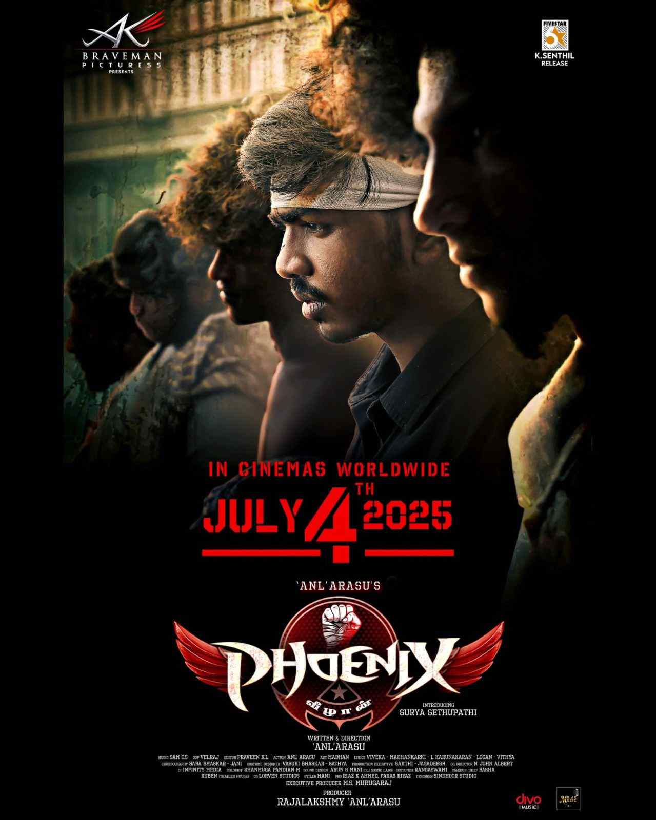 ചെന്നൈ 27 ജൂൺ 2025 തെന്നിന്ത്യൻ സൂപ്പർ താരം വിജയ് സേതുപതിയുടെ മകൻ സൂര്യ സേതുപതി ആദ്യമായി നായകനായെത്തുന്ന ചിത്രം ഫീനിക്സ് ജൂലൈ നാലിന് തിയേറ്ററുകളിലേക്കെത്തും.