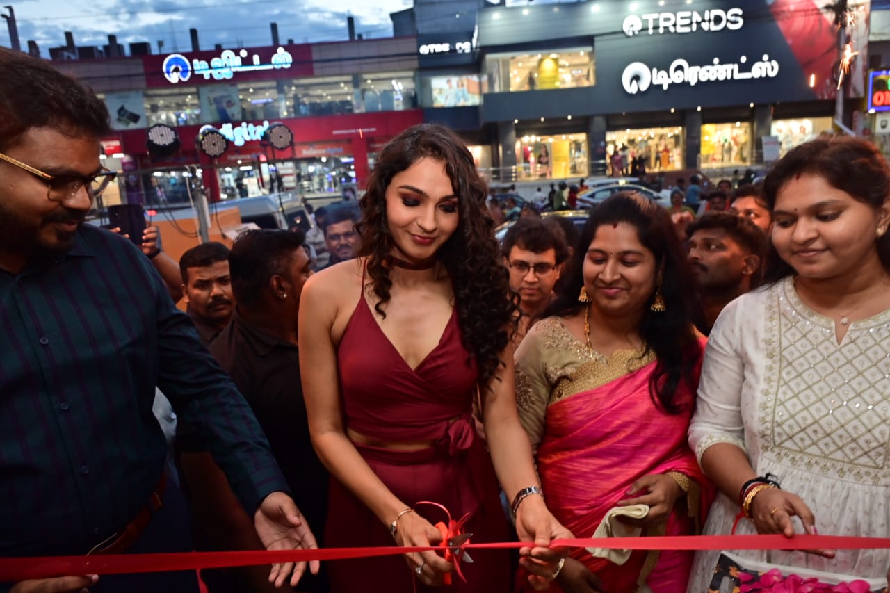 நடிகையும் பாடகியுமான ஆண்ட்ரியா கலந்து கொண்டு ரிப்பன் வெட்டி கடையைத் திறந்து வைத்தார்.