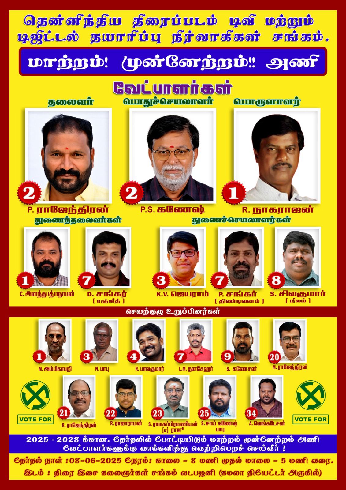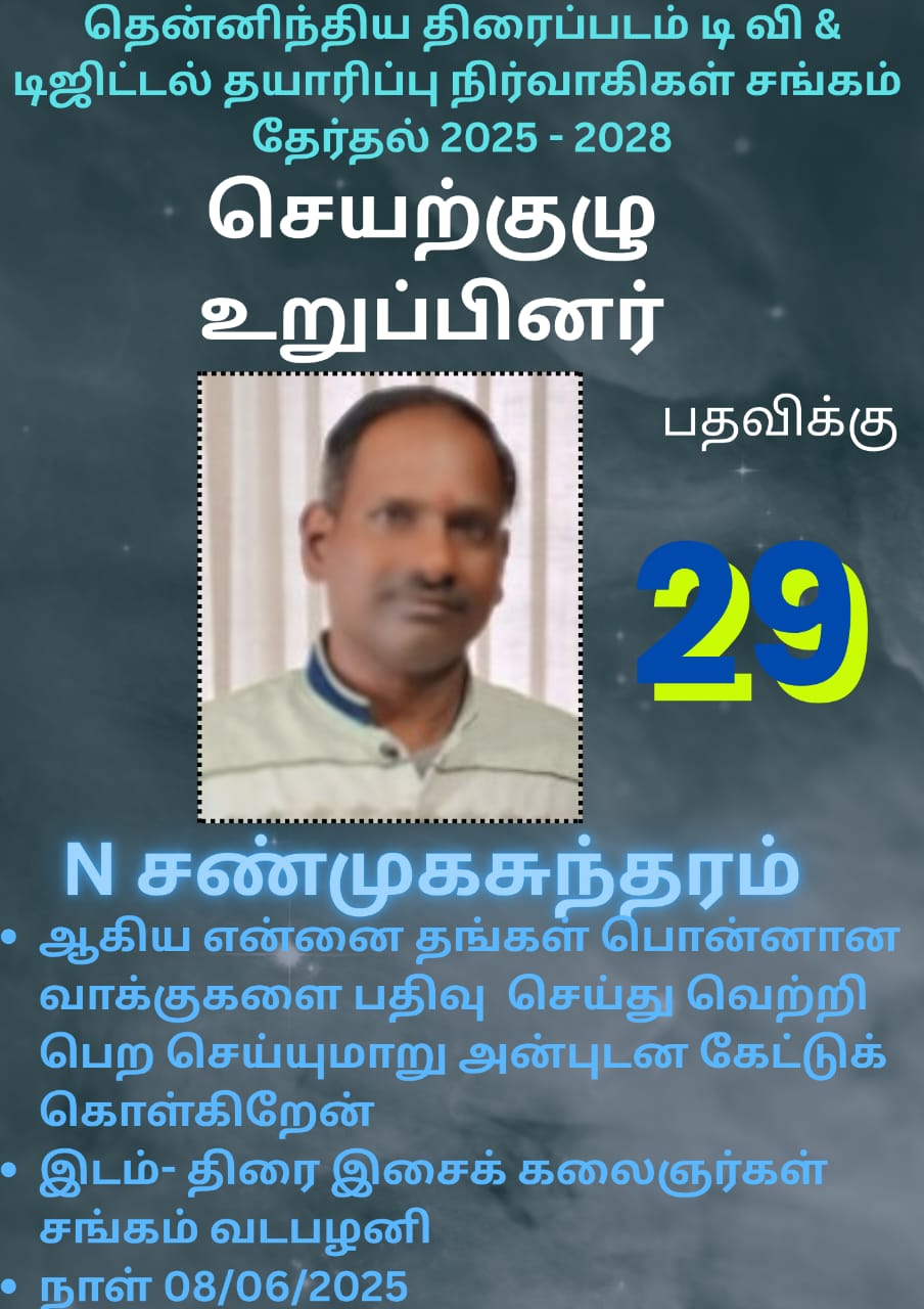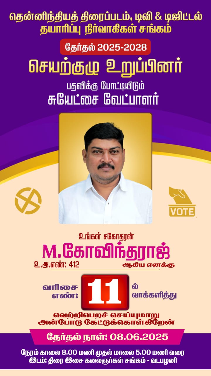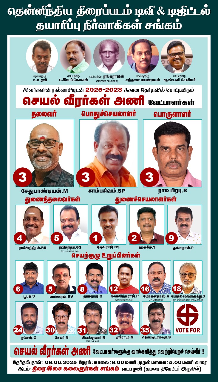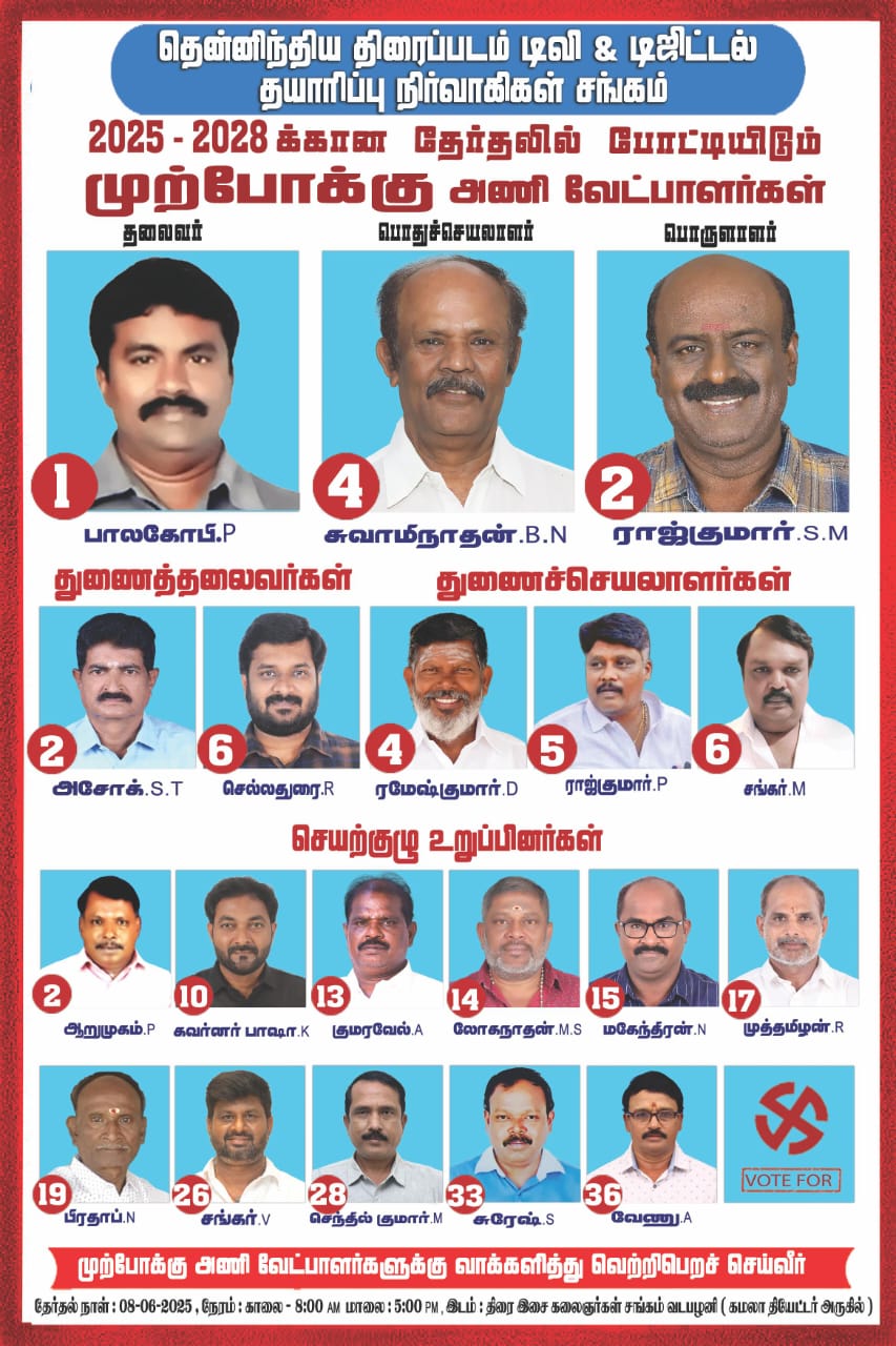 தென்னிந்திய திரைப்படம் டிவி &  டிஜிட்டல் தயாரிப்பு நிர்வாகிகள் சங்கத்தின் 2025 – 2028 வருடத்திற்கான தேர்தல் வருகிற ஜூன் மாதம் 08 ஆம் தேதி நடக்க உள்ளது.