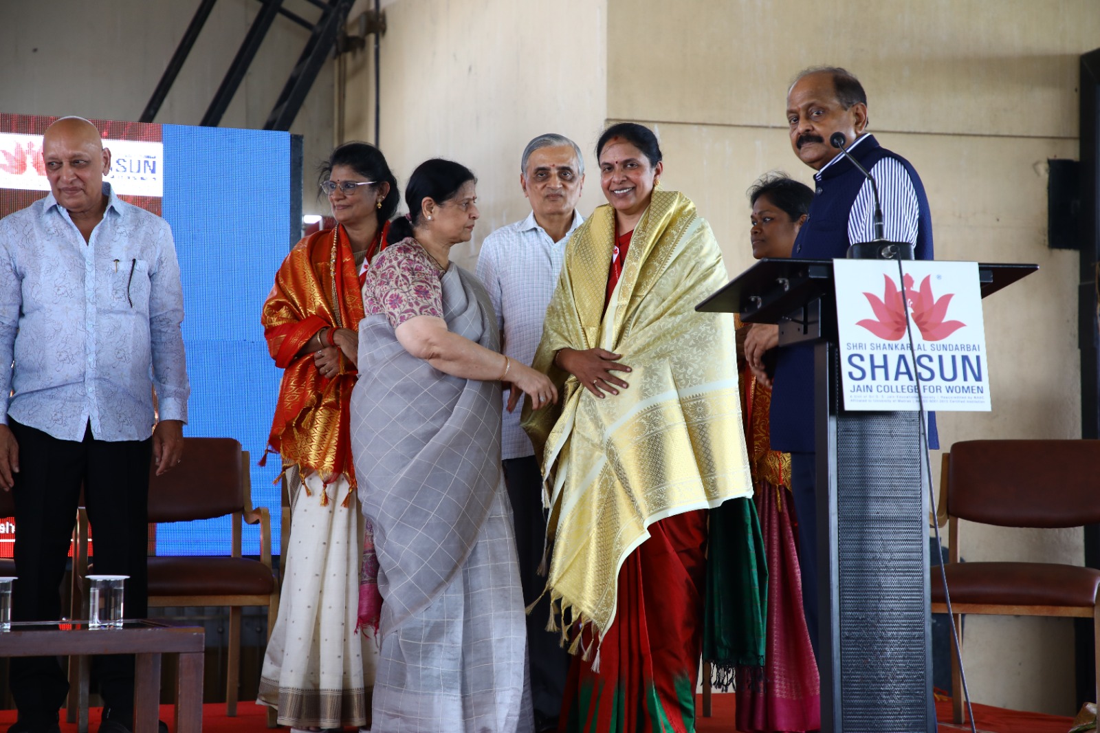 தேசிய மதிப்பீடு மற்றும் தரச்சான்றிதழ்களுக்கான ஆய்வில், ஸ்ரீ சங்கர்லால் சுந்தர் பாய் சசுன் ஜெயின் மகளிர் கல்லூரி 3.64 மதிப்பெண் பெற்று A++ என்ற உயர்தர சான்றிணை பெற்றது!இந்த வரலாற்று சிறப்புமிக்க அறிவிப்பை சசுன் கல்லூரி குழுமத்தினரும், எஸ் எஸ் ஜெயின் எஜுகேஷன் சொசைட்டி குழுமத்தினரும், கல்லூரி பேராசிரியர்களும், மாணவர்களும் ஒருவருக்கொருவர் இனிப்புகள் வழங்கி மகிழ்ச்சியை கொண்டாடினர்…