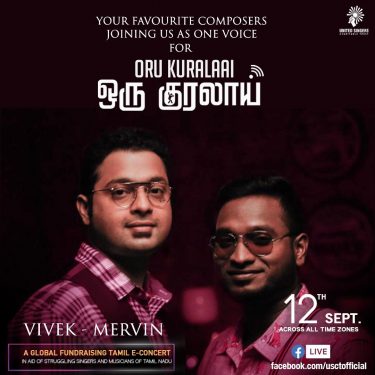 பல்வேறு இசைக்கலைஞர்கள் இணைந்து பங்கேற்கும்”ஒரு குரலாய்”இசை நிகழச்சி இன்று மாலை 6 மணி (6 PM IST) அளவில் -செப்டம்பர் 12-அன்று ஒளிபரப்பாக இருக்கிறது.மகத்தான இந்த நிகழ்ச்சியில் ஏற்கனவே உலகநாயகன் கமல்ஹாசன் இசைப்புயல் ஏ.ஆர்.ரஹ்மான் போன்றவர்களுடன் வாழ்த்துத் தெரிவித்து இணைந்திருக்கிறார் சூப்பர் ஸ்டார் ரஜினிகாந்த் அவருடைய வானொலியும் நிகழ்ச்சியில் ஒளிபரப்பாகும் என்பதை மகிழ்வுடன் தெரிவிக்கிறோம். வலைத்தளத்தில் இன்று வெளியாகும் நிகழ்ச்சியை கீழே குறிப்பிட்டுள்ள முகநூலில் பக்கங்களில் எந்தக் கட்டணமும் இன்றி உலகமெங்கும் உள்ள இசை ரசிகர்கள் ரசிக்கலாம்.