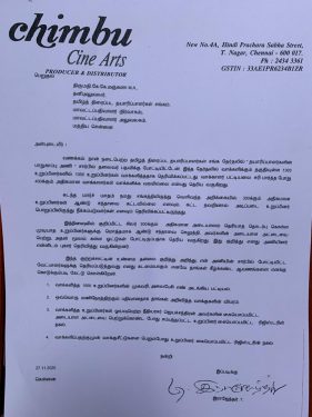 இதற்கிடையில் இன்று காலை டி.ராஜேந்தர் சங்கங்களின் தனி அலுவலர் திருமதி மஞ்சுளா அவர்கள் சந்தித்து கோரிக்கை மனு ஒன்றை கொடுத்துள்ளார்.