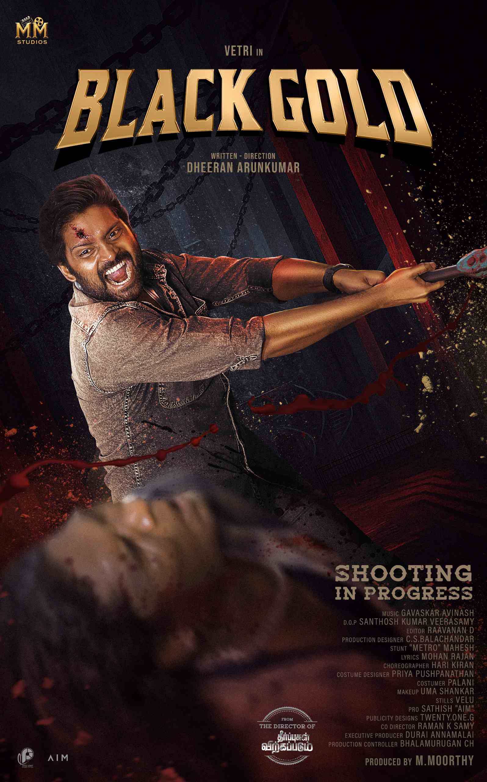 சென்னை 09 ஆகஸ்ட் 2025 MM ஸ்டுடியோஸ் சார்பில் M.மூர்த்தி வழங்கும், “தீர்ப்புகள் விற்கப்படும்” புகழ் தீரன் அருண்குமார் இயக்கத்தில், நடிகர் வெற்றி, பிரியாலயா, லிவிங்ஸ்டன், துளசி, பிக்பாஸ் அபிராமி, A.வெங்கடேஷ், அருள் D சங்கர், விஜய் டிவி ராமர் உள்ளிட்டோர் நடிக்க, பரபரப்பான ஆக்சன் திரில்லர் ஜானரில் உருவாகியிருக்கும் “பிளாக் கோல்டு” படத்தின் First லுக் வெளியானது.
