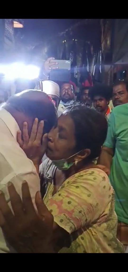 திடீரென ஒரு பெண்மணி அவர் அருகே வந்து அவள் கையை பிடித்து, “எங்க தெய்வம் நீதானய்யா நீதானய்யா கொரோனா காலத்துல எல்லா உதவியும் செஞ்சு எங்கள காப்பாத்துன தெய்வம் நீ தான நீ ஜெயிக்கணும்ய்யா என்று சொல்லி ஜெயக்குமாரின் கைகளை பற்றிக் கொண்டார்.