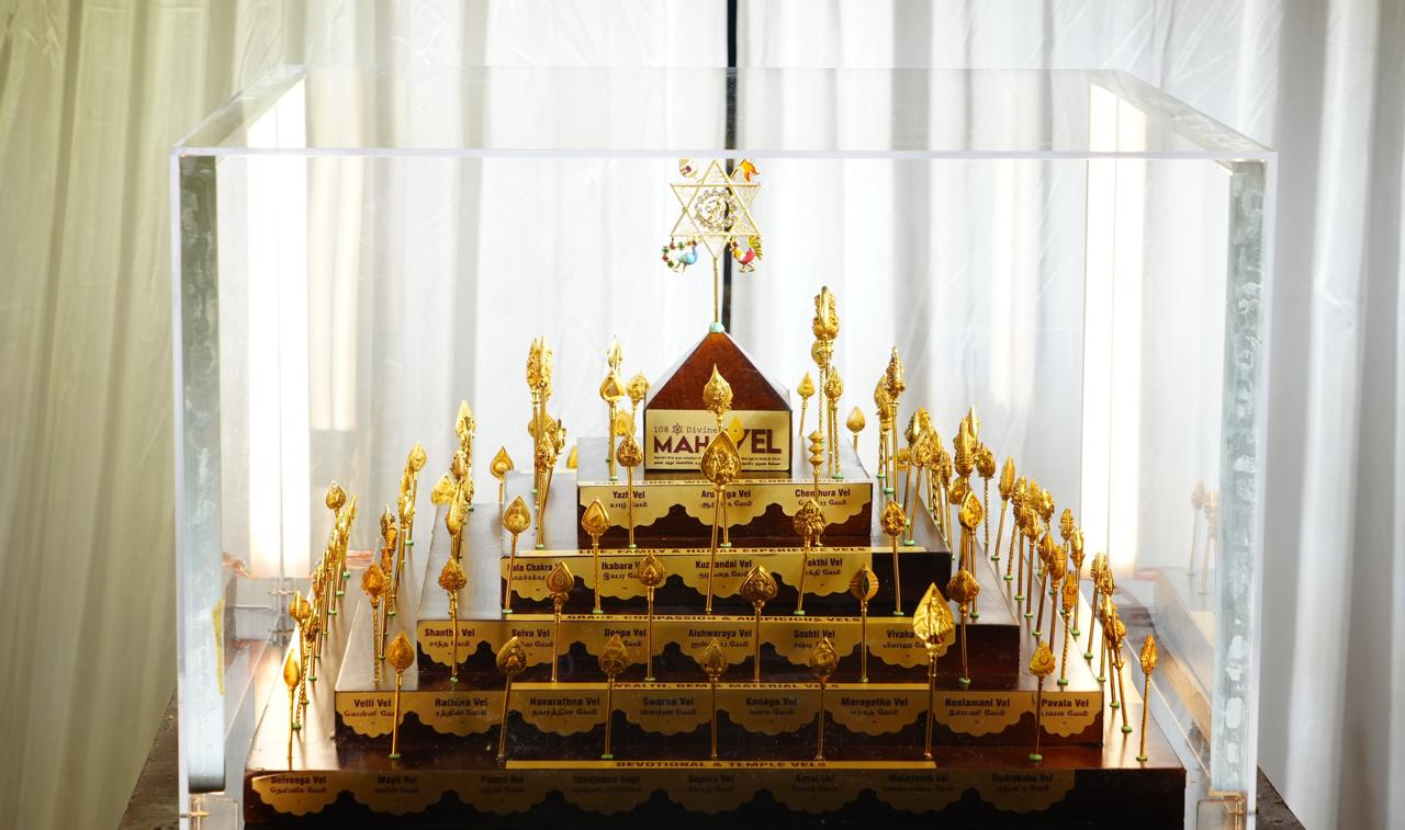 108 தெய்வீக மகாவேல் தொகுப்பில் உள்ள ஒவ்வொரு வேலும் தனித்தனியாக ஆன்மீக ஆய்வுகளுடன் வடிவமைக்கப்பட்டு, ஆலய ஆசீர்வாதம் பெற்றதாகவும், புனித எழுத்துகள், ரத்தினங்கள், ராசி குறியீடுகள் மற்றும் புராண அர்த்தங்களுடன் அலங்கரிக்கப்பட்டதாகவும் உருவாக்கப்பட்டுள்ளது.