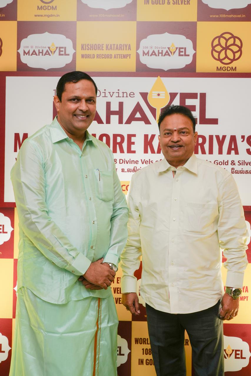 சென்னை 08 ஜனவரி, 2026: புகழ்பெற்ற நகை வியாபாரியும், ஆன்மீகத் தொலைநோக்காளருமான, மகாலட்சுமி கோல்ட் & டைமண்ட் மெர்சன்ட்ஸ் நிறுவன மேலாண்மை இயக்குநர் கிஷோர் கட்டாரியா, “108 தெய்வீக மகாவேல்” என்ற உலகின் முதல் முயற்சியாக, முருகப்பெருமானின் 108 தனித்துவமான, ஆய்வுசெய்யப்பட்ட வேல்களை தங்கம் மற்றும் வெள்ளியில் உருவாக்கி வரலாற்றுச் சாதனையை நிகழ்த்தியுள்ளார்.