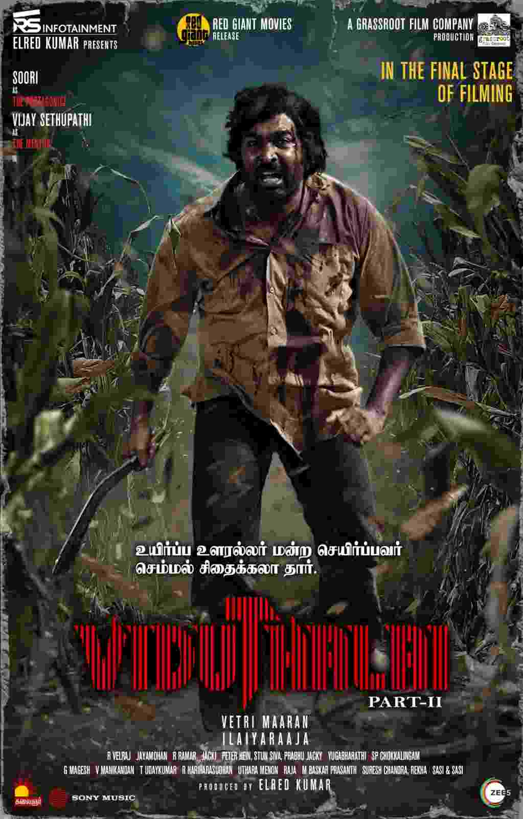 During this juncture, producer Elred Kumar of RS Infotainment is excited to present the First Look of this film in both Tamil and Telugu (Vidudala Part 2) starring Vijay Sethupathi and Soori as the lead characters.
